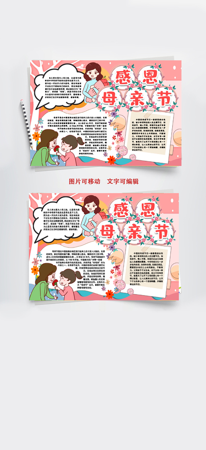 可爱粉色感恩母亲节介绍小报手抄报Word文档