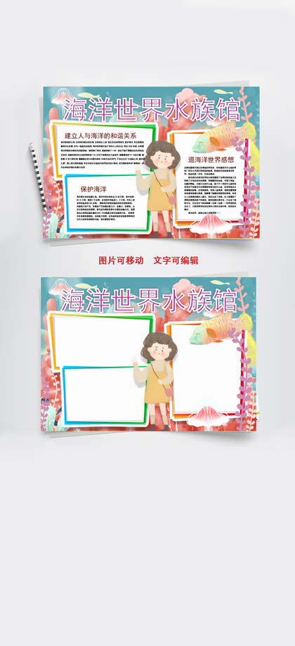 卡通手绘海洋世界水族馆介绍手抄报Word文档
