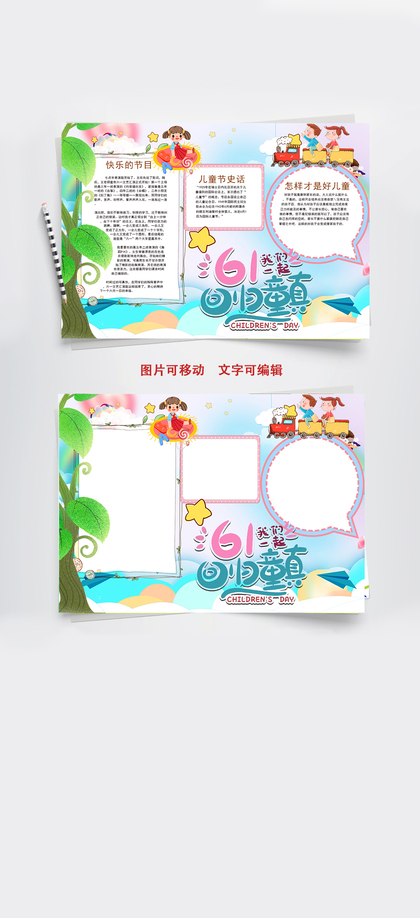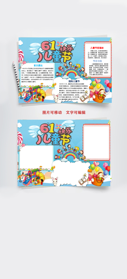 卡通蓝色六一儿童节快乐手抄报Word文档