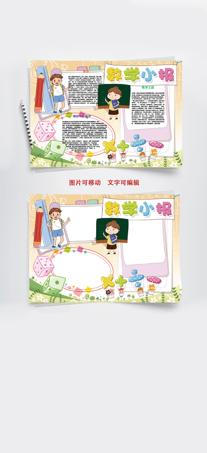 趣味卡通风儿童教育数学小报手抄报Word文档
