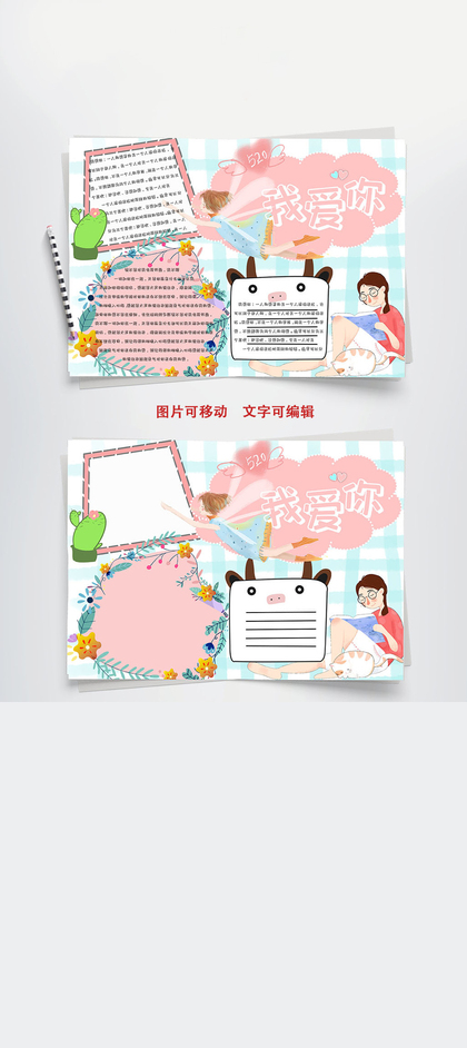 粉色文艺我爱你小报手抄报word模板 7.3-7.5