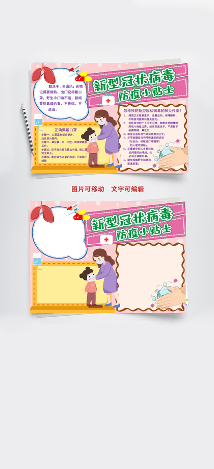 粉色卡通风防疫小贴士宣传手抄报Word文档