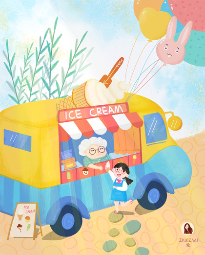 夏日老奶奶的冰激凌车