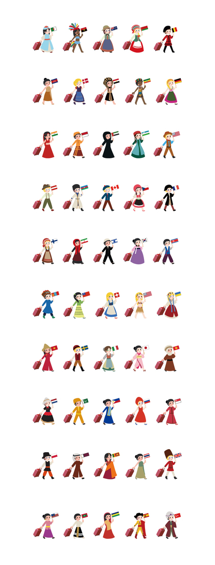 首都机场五十个国家人物插画