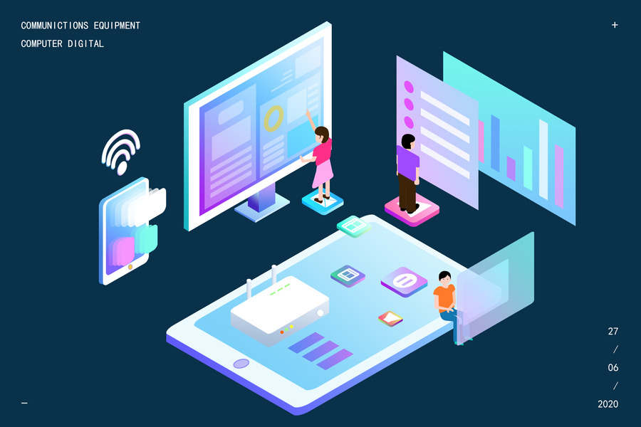 2.5d智慧物联网5G通讯远程数据存储安全插画海报设计