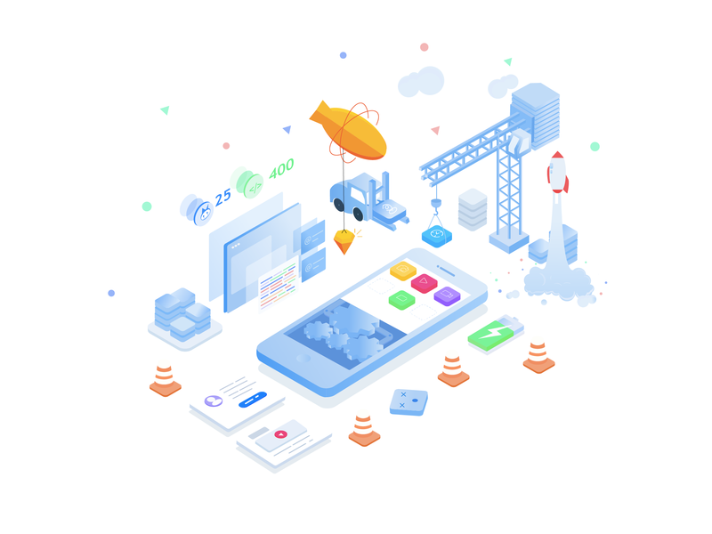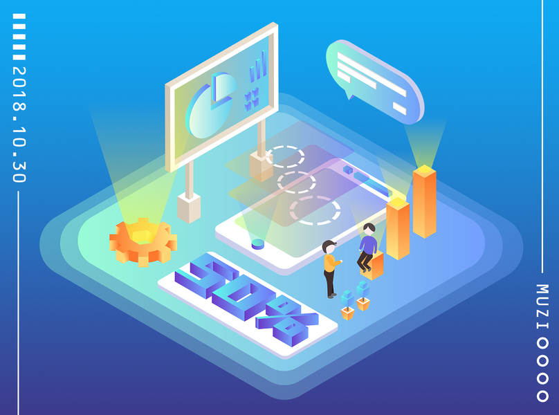 2.5D插画等距立体科技城市网页数据商务图标设计素材