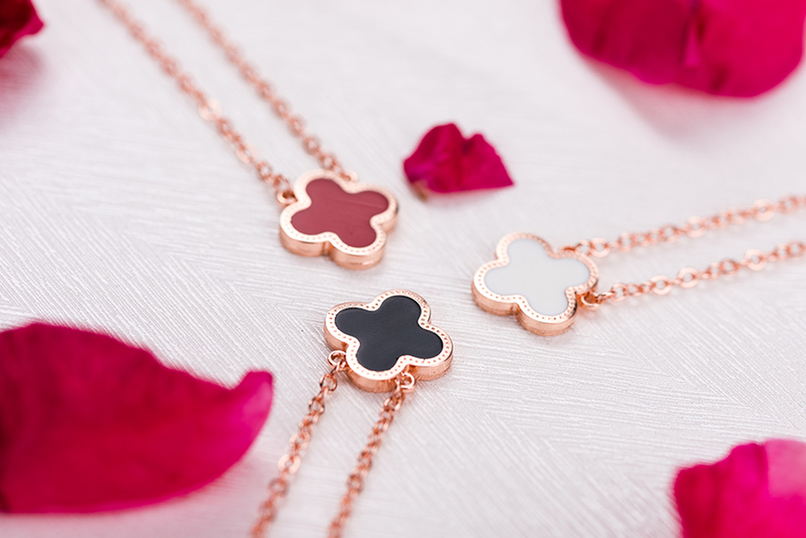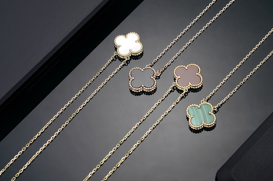 珠宝摄影 修图 18K金 项链 四叶草 钻石