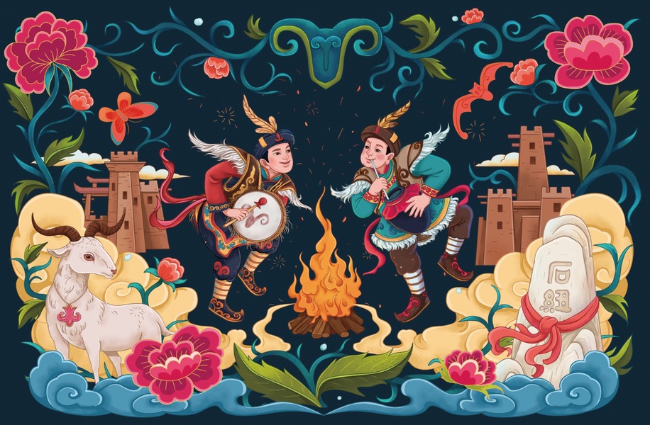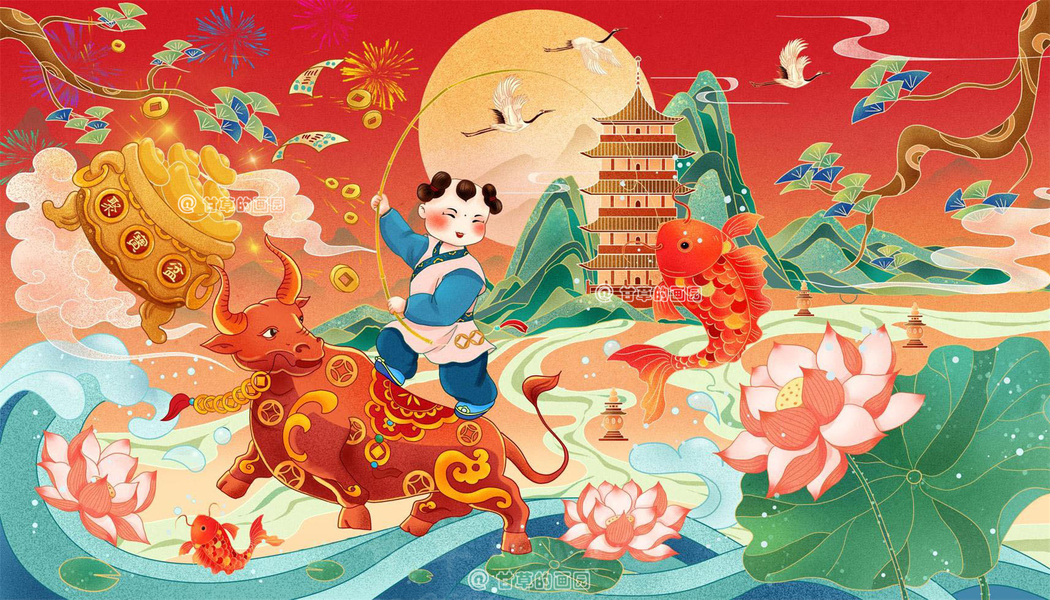 《牛年繁盛吉祥风,福禄寿喜财欢迎》