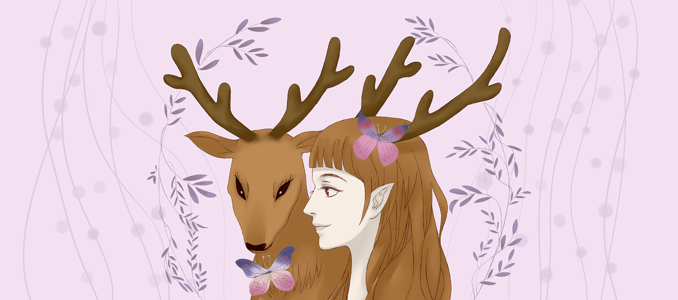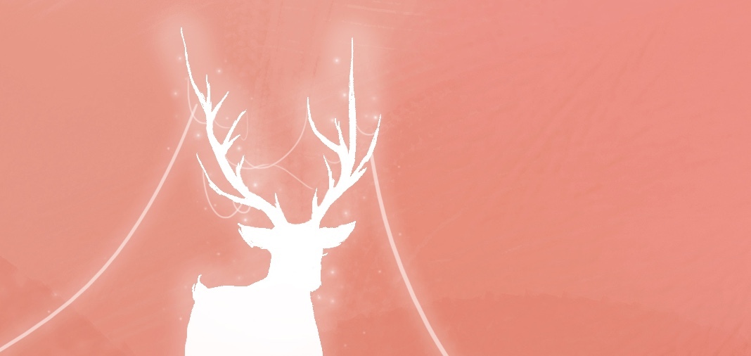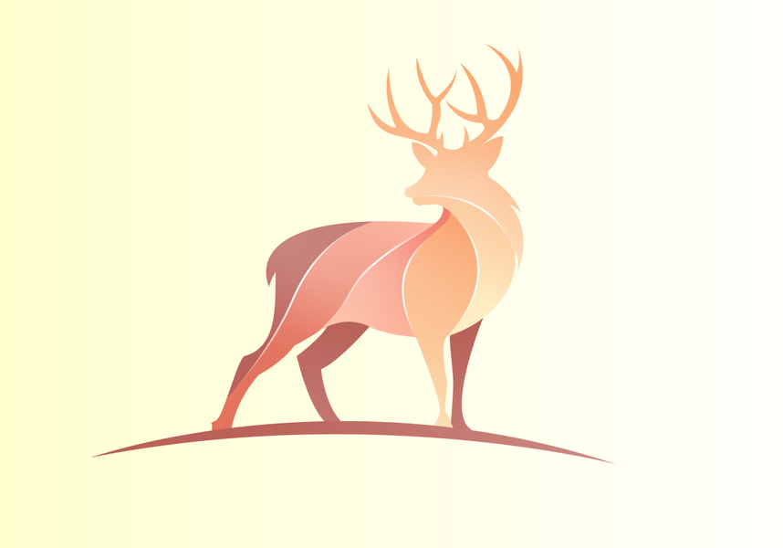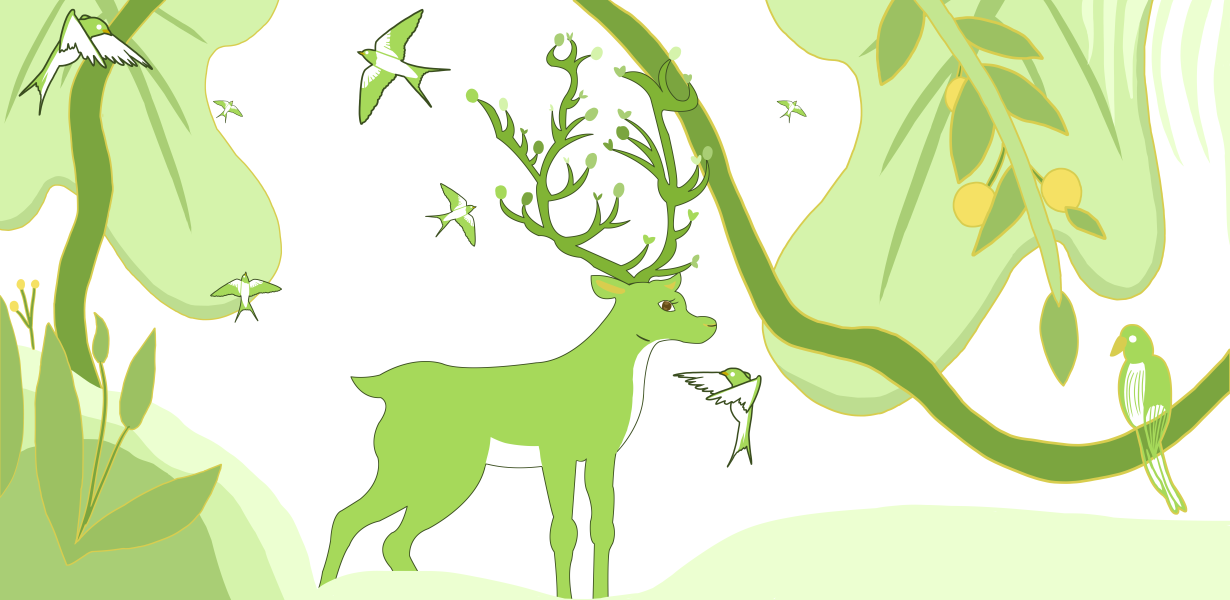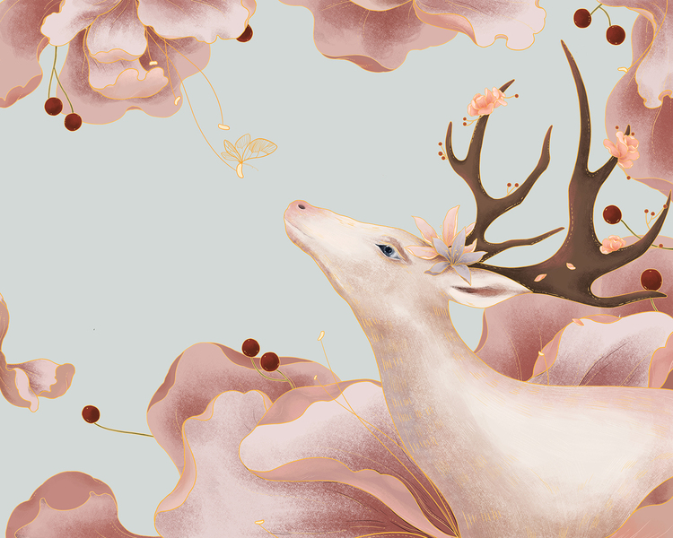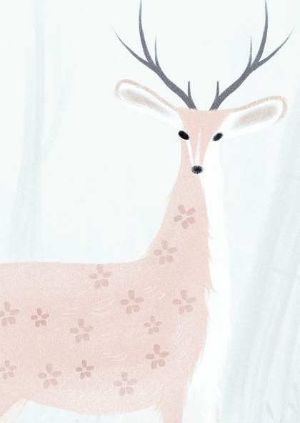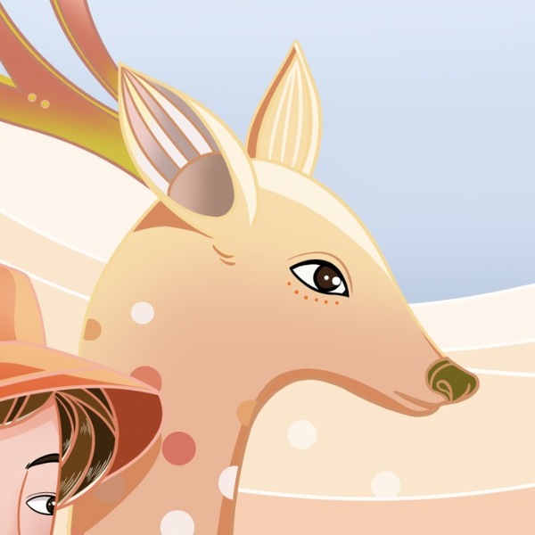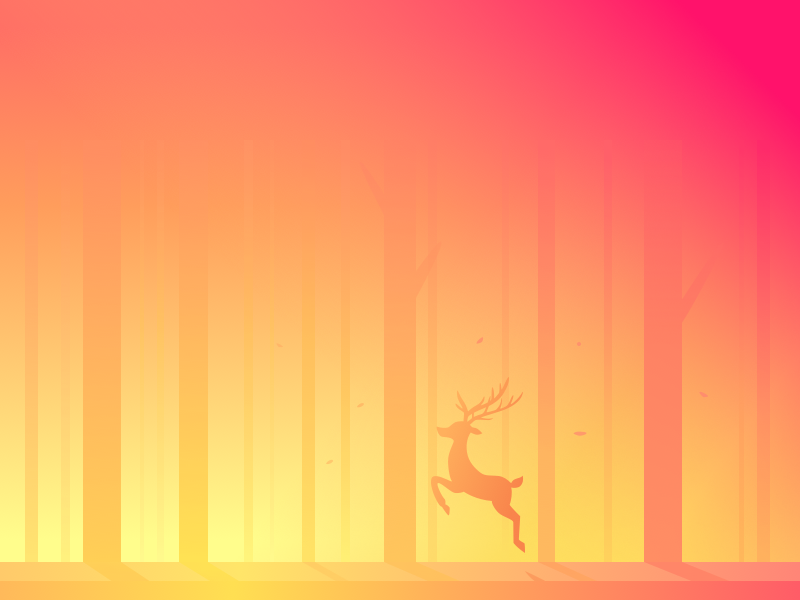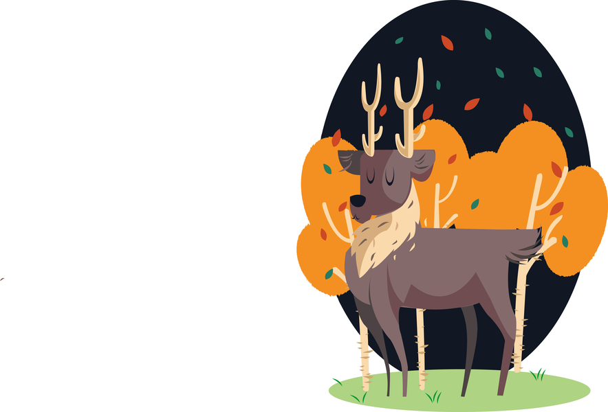 夕阳 深林 小鹿插画