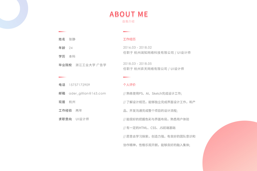UI设计师 求职简历 求带走~