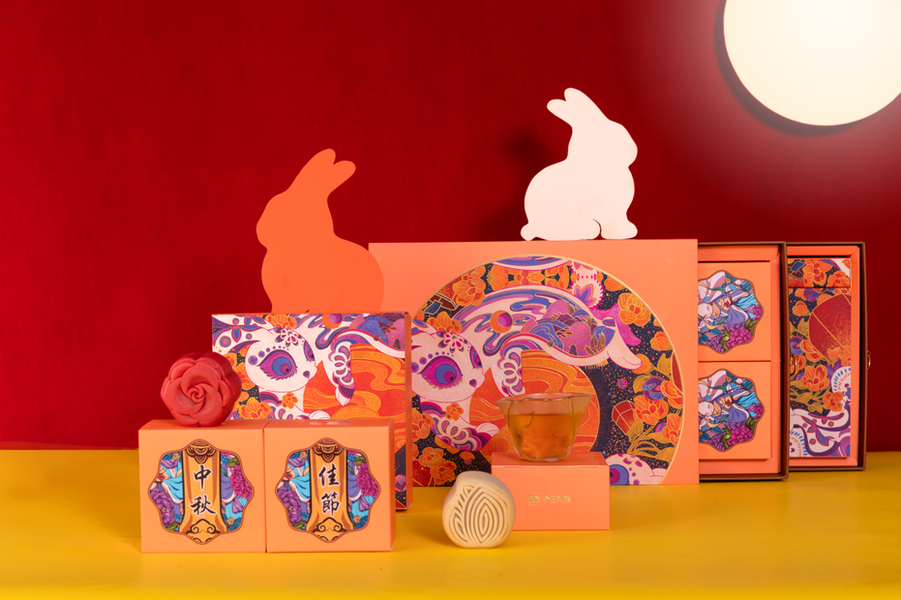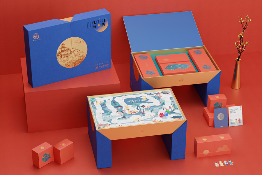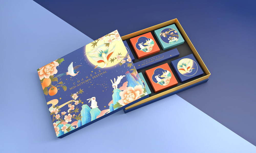 橘猫设计x中秋月夜花朝礼盒包装设计手绘国潮风插画
