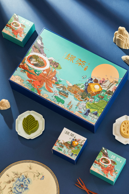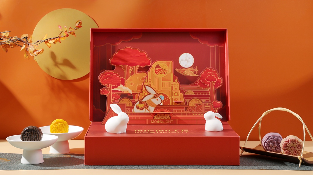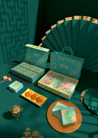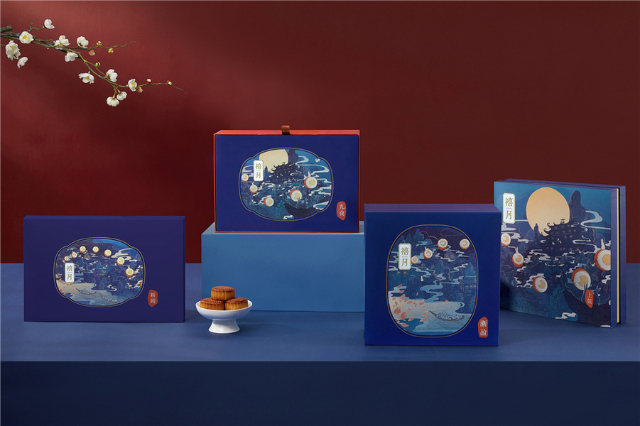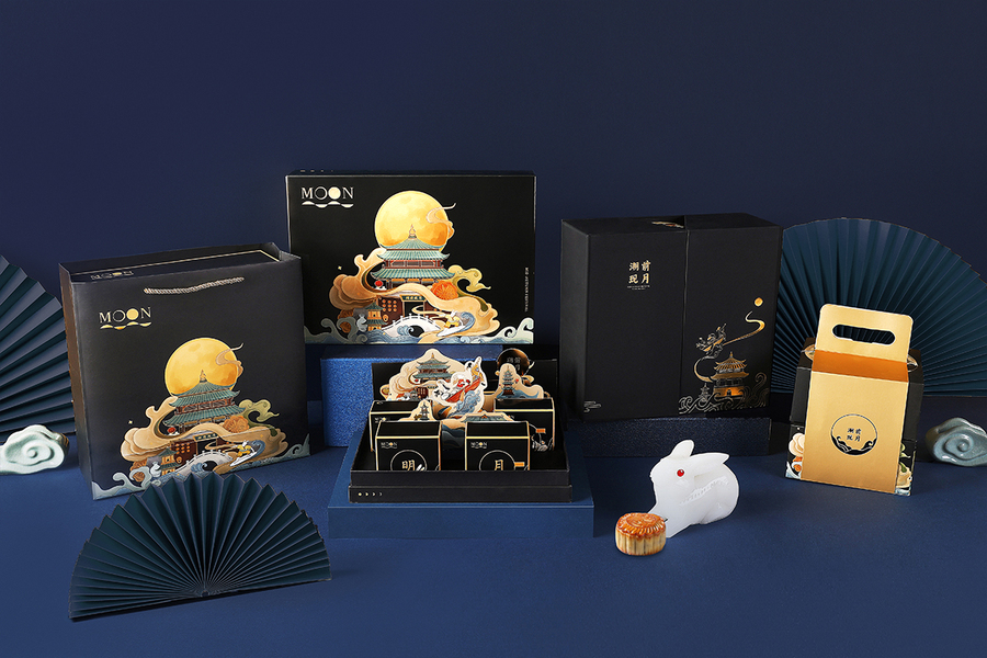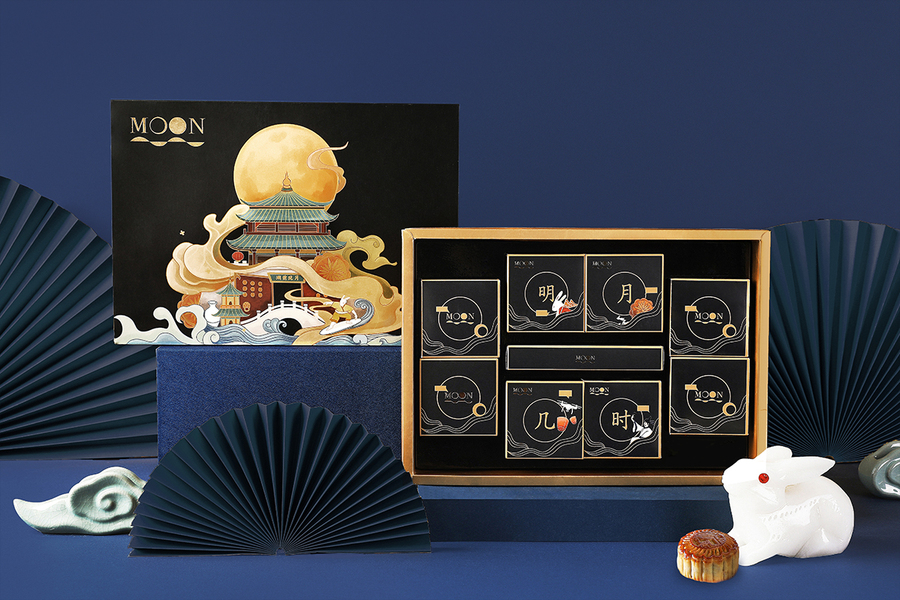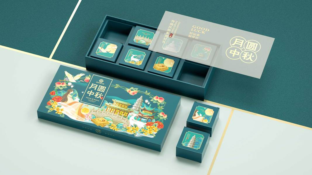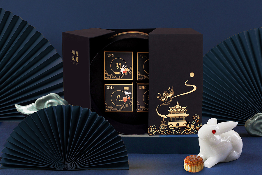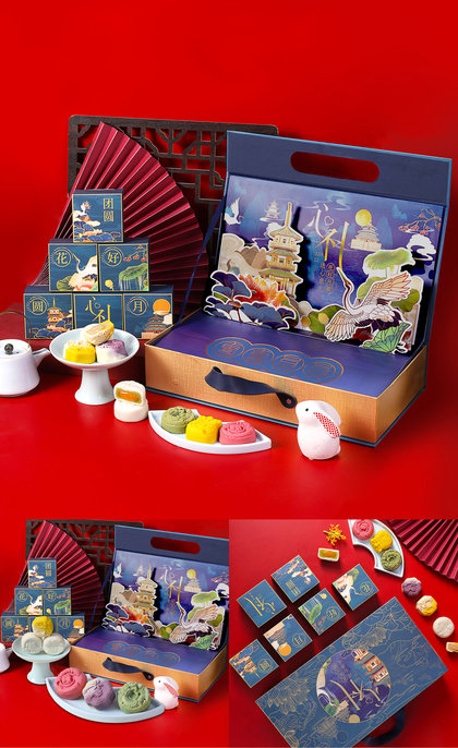 新中式中秋月饼礼盒の包装盒静物拍摄