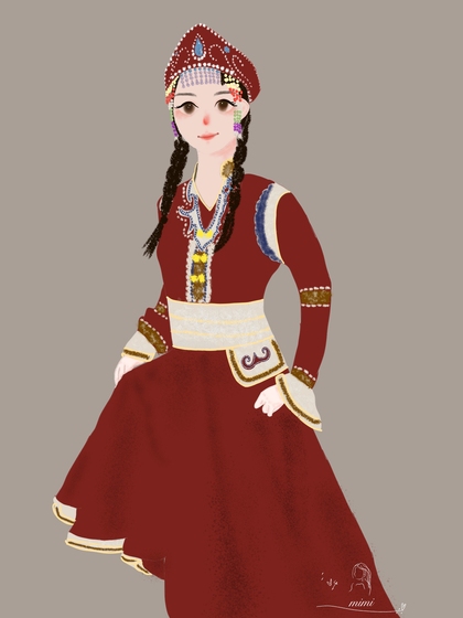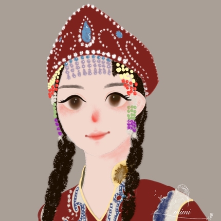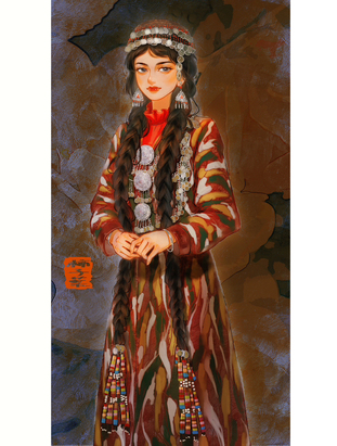 (民族风插画)乌孜别克族姑娘