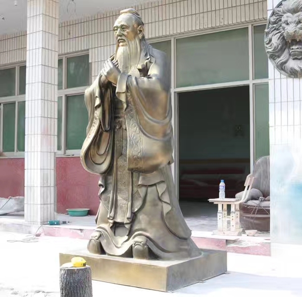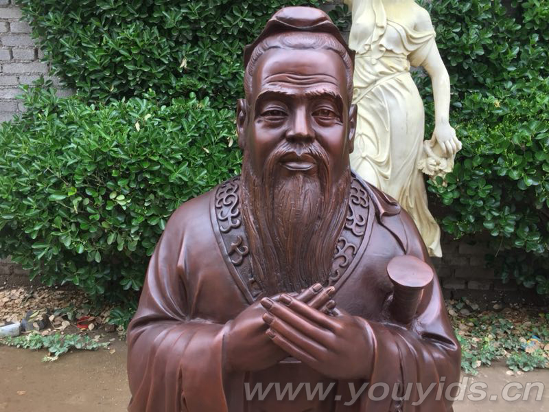 玻璃钢孔子人像雕塑仿铜古代人物名人雕像公园景观摆件