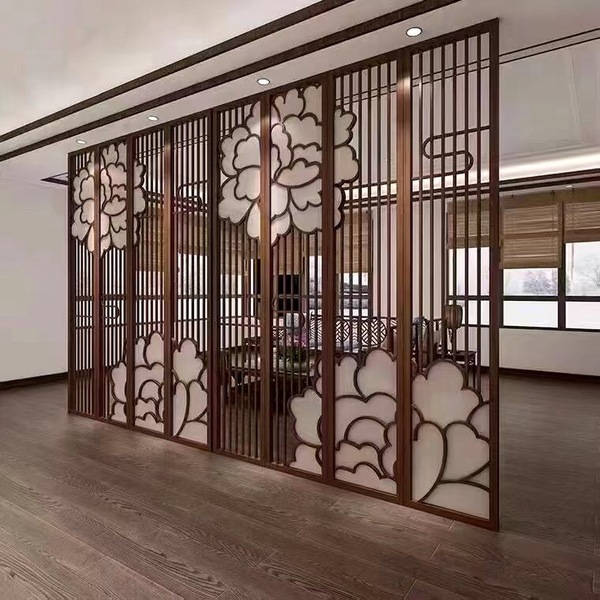 不锈钢屏风电视背景墙 中式装修仿古镂空雕花格栅