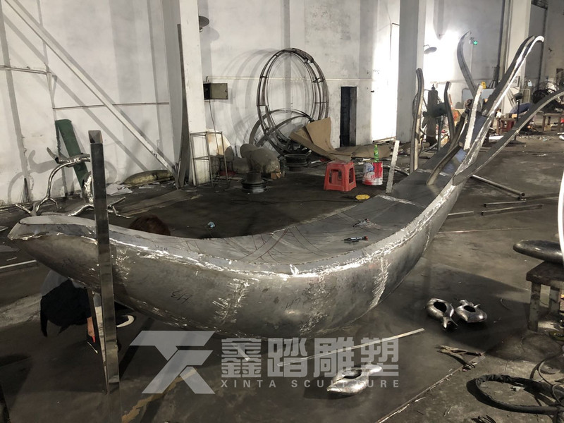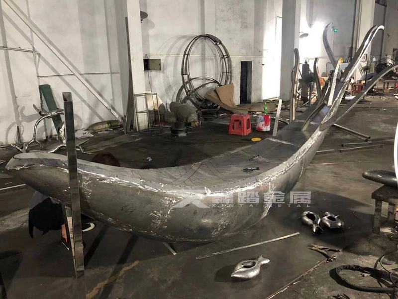 恒大地产景观雕塑—抽象不锈钢树舟雕塑摆件