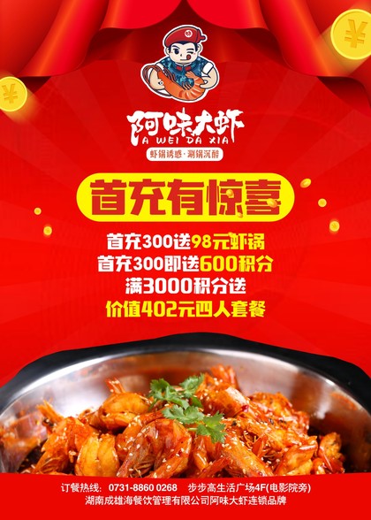 湖南成雄海餐饮管理有限公司旗下阿味大虾火锅品牌海报