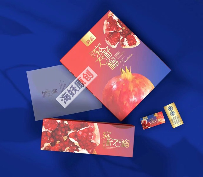 {原创}突尼斯软籽石榴水果礼盒手绘插画包装设计