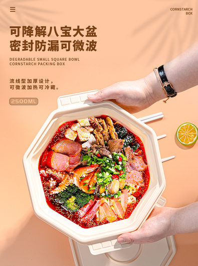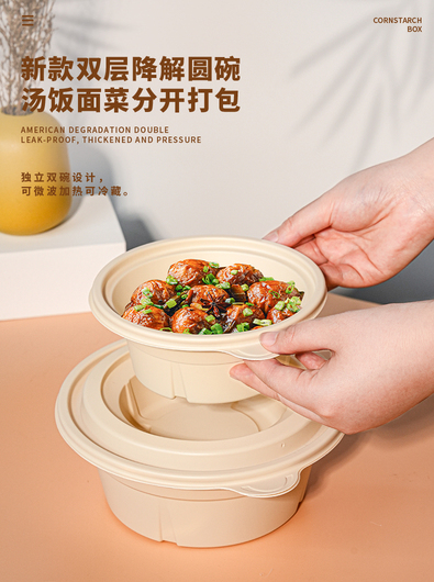 双层可降解餐盒一次性外卖打包盒摄影拍照后期详情
