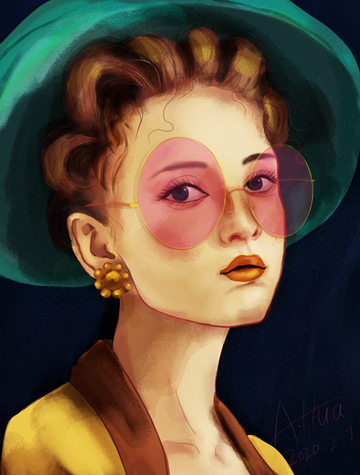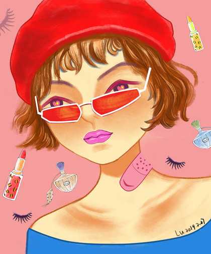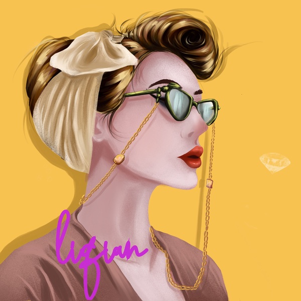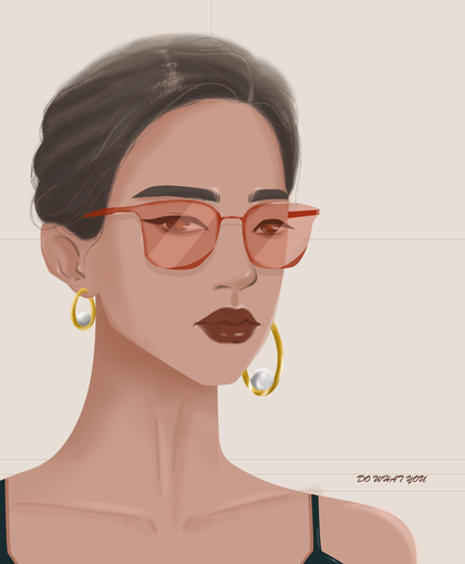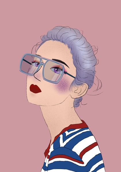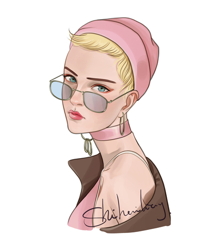 戴墨镜的酷酷女生欧美插画头像临摹练习