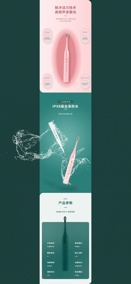 电商设计丨粉红绽放 — 电动牙刷详情设计