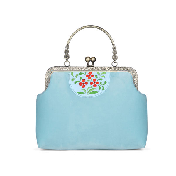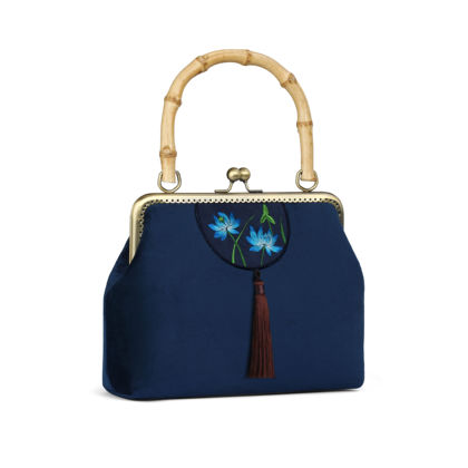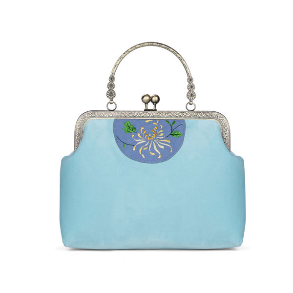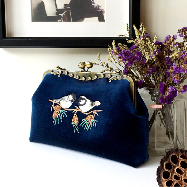 复古原创设计手工定制丝绒刺绣口金包单肩包斜挎包手拎女包