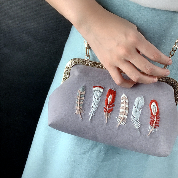 古逸坊原创工作室新品中国风羽毛口金包配饰材料包