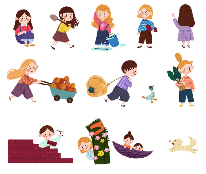 景观人物插画素材|儿童系列
