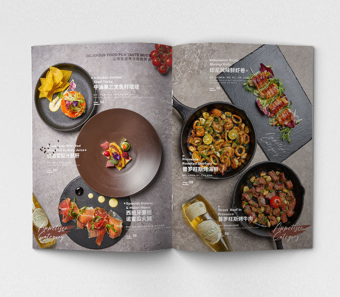 西餐菜单拍摄设计简洁水泥风格菜单拍摄设计西餐杂志