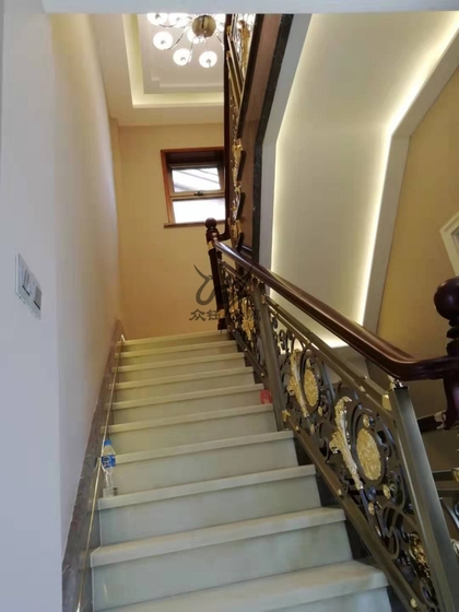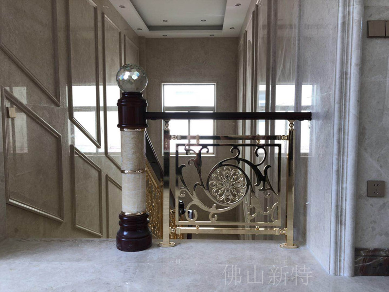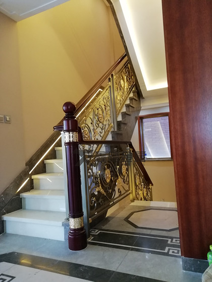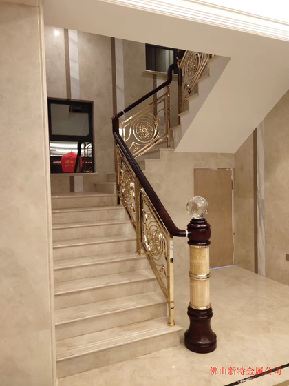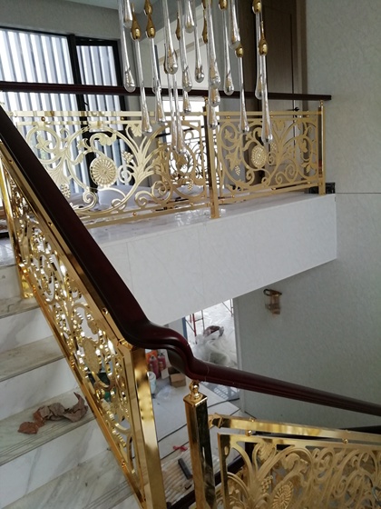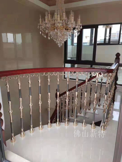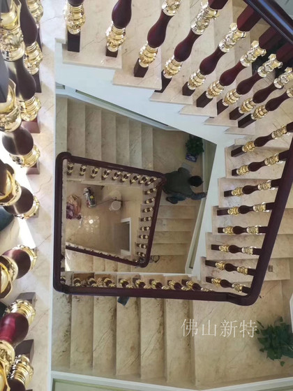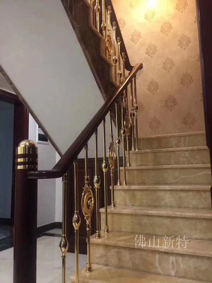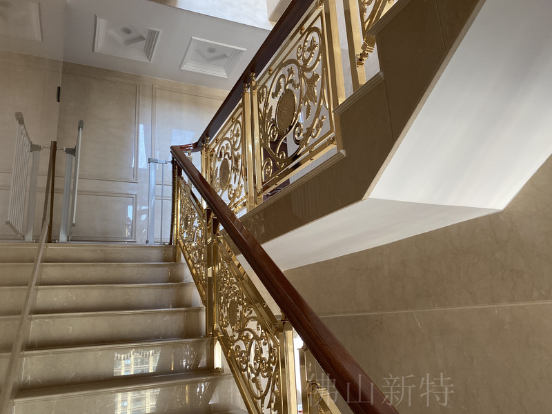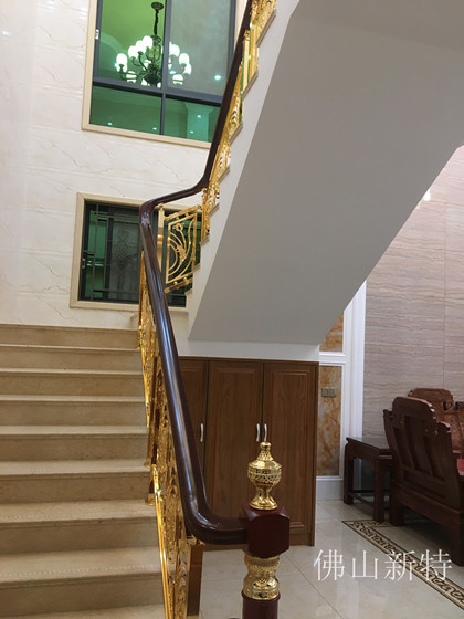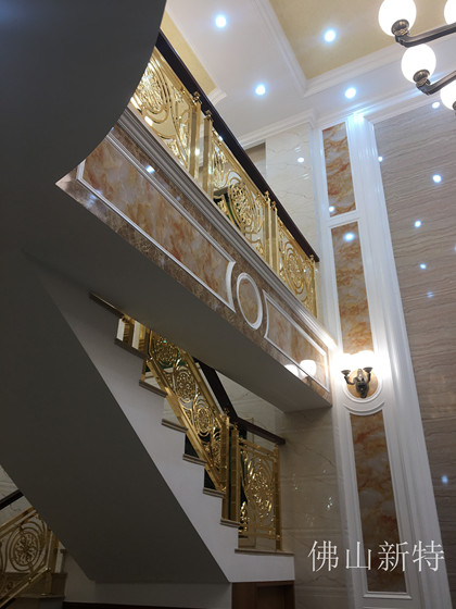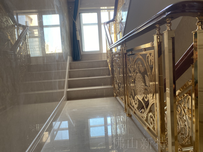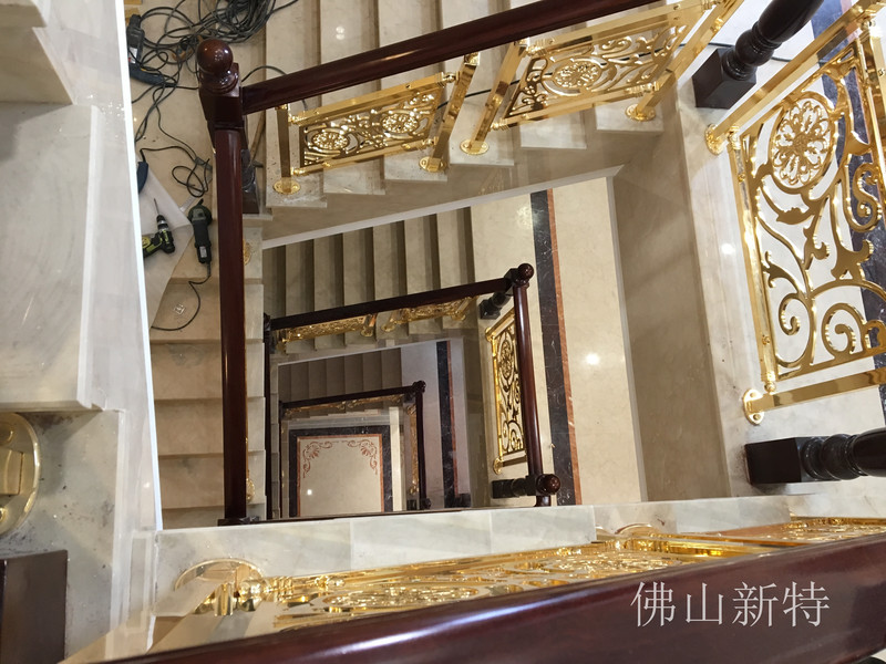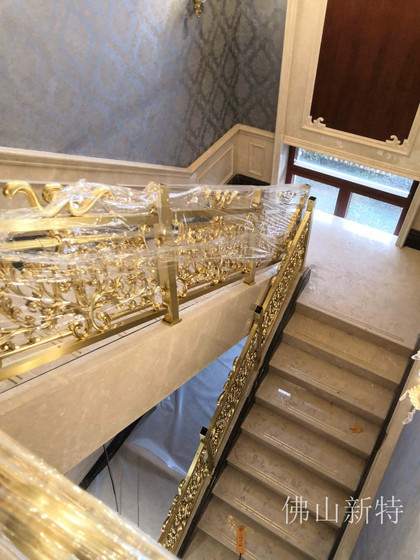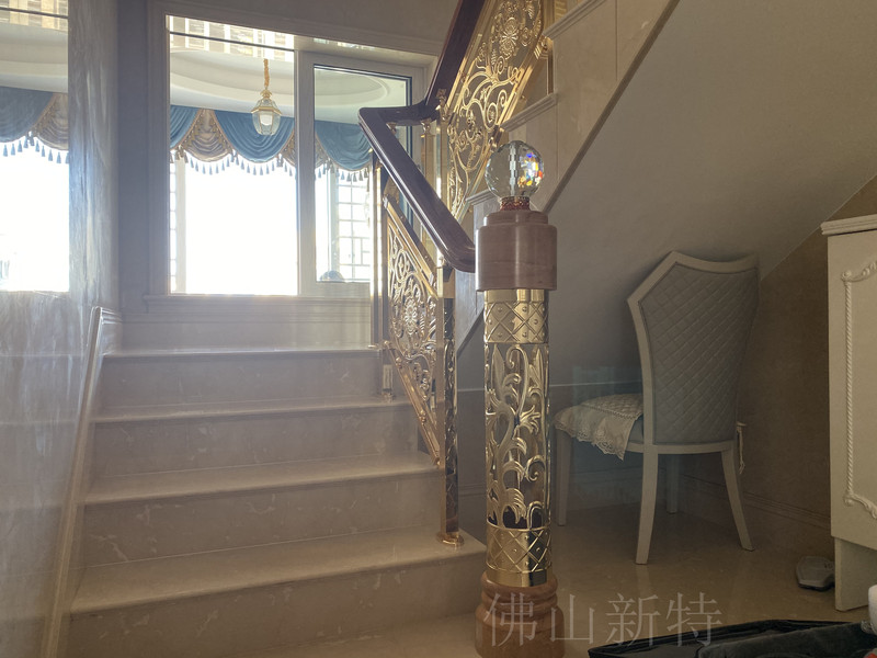 铝艺楼梯栏杆别墅镀金楼梯扶手安装实例