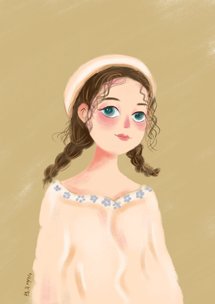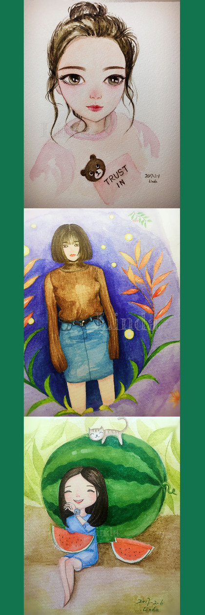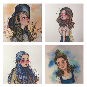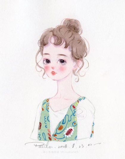 小熊猫课堂 一张丸子头水彩女孩 水彩头像 卡通女孩