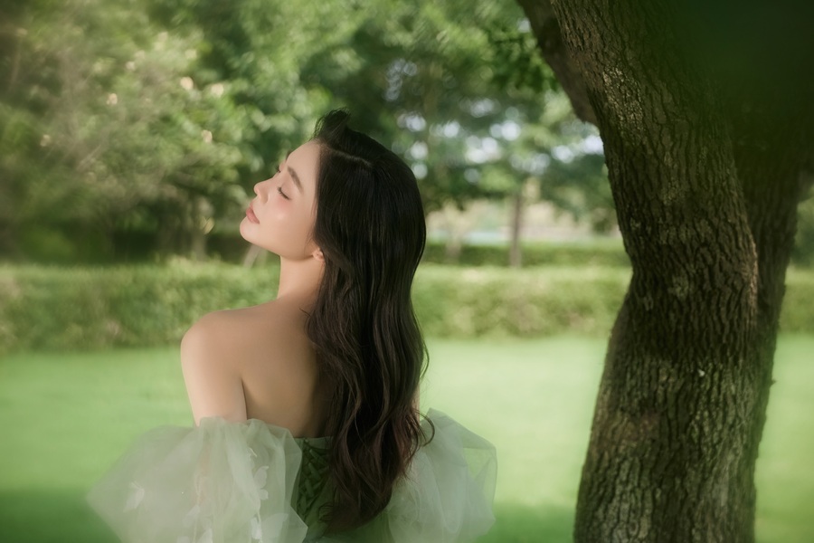 把草坪婚纱照拍成这样,我愿称之为 “甜妹天花板”