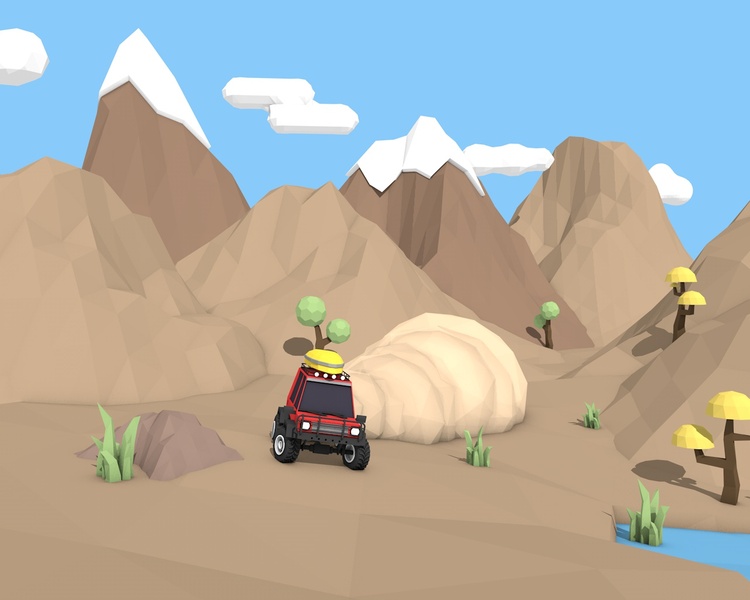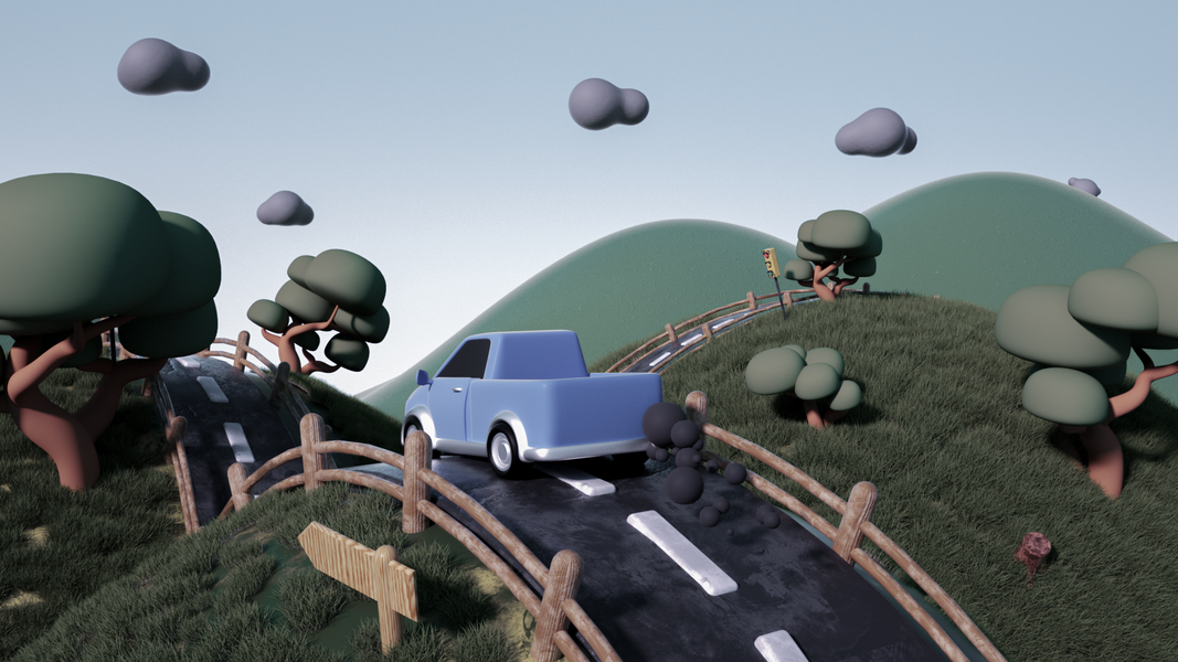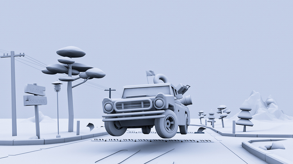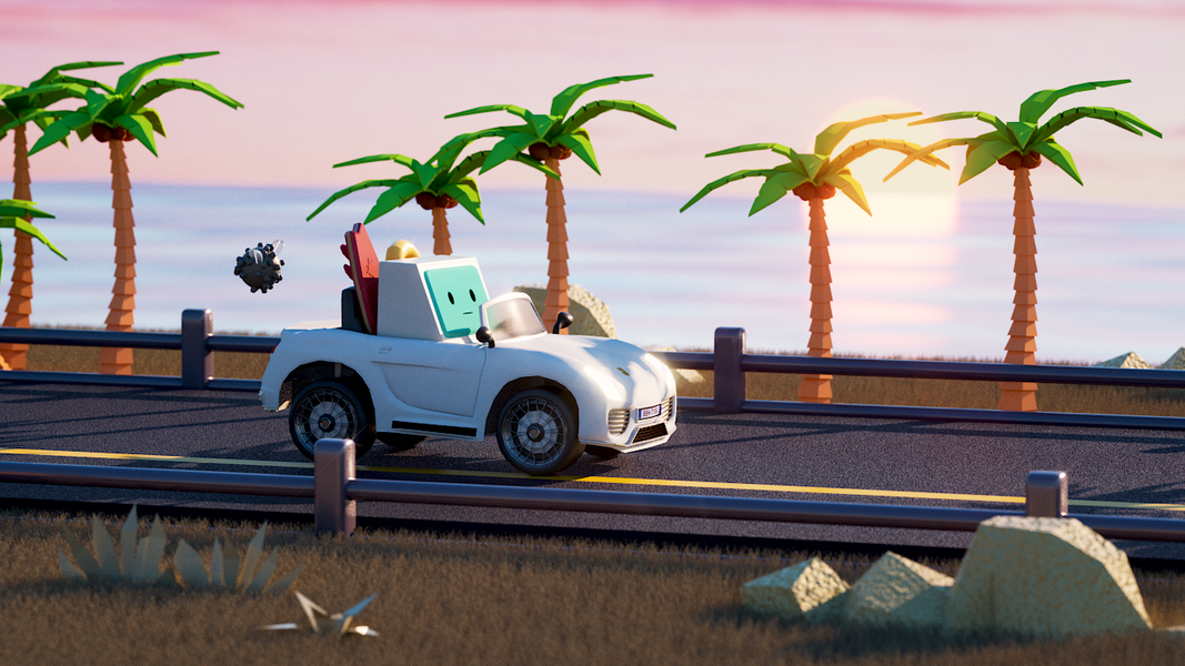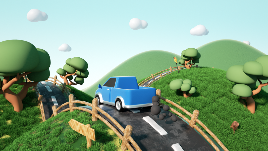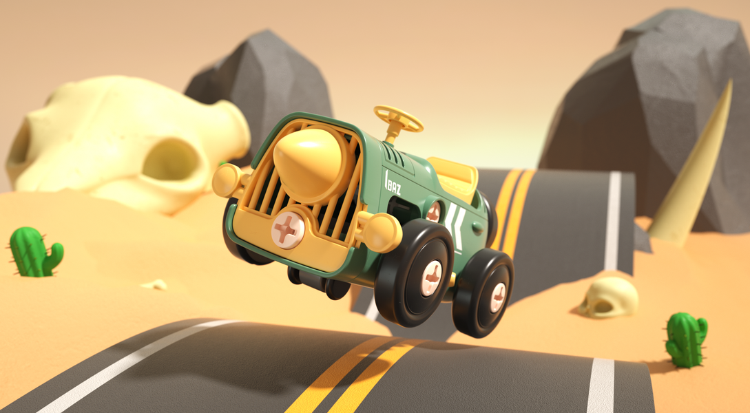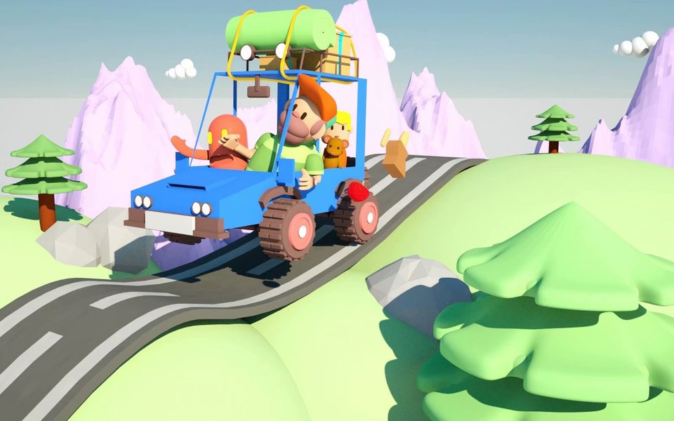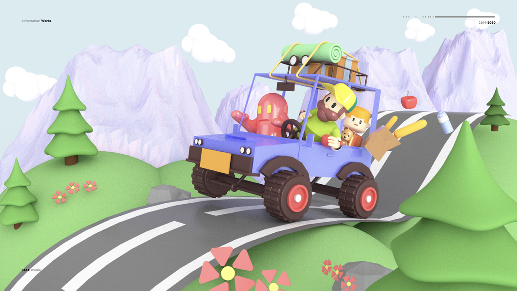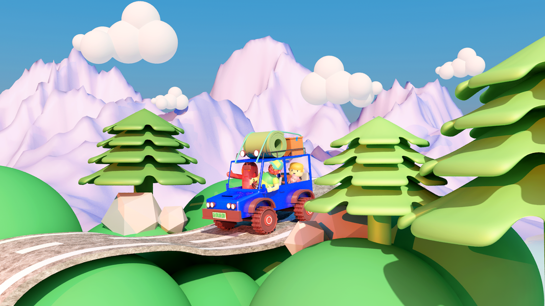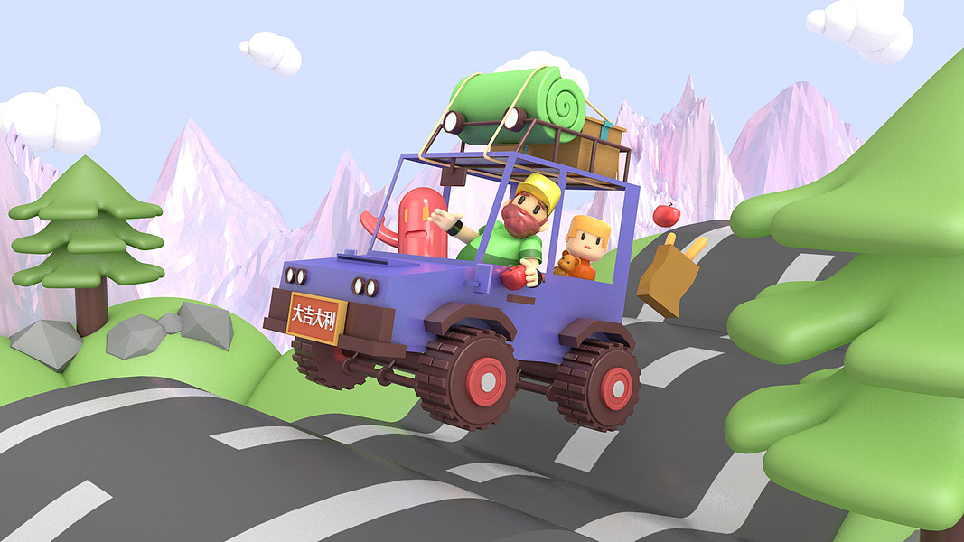 C4D三维卡通插画两篇丨远走高飞 小院儿