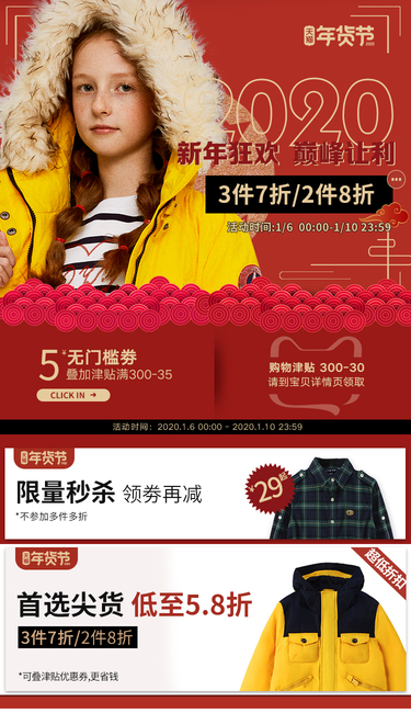 淘宝天猫商城 儿童运动服/羽绒服 直通车海报