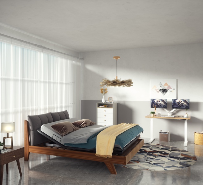 家具摄影,惠州产品拍摄,精美床架现场拍摄图