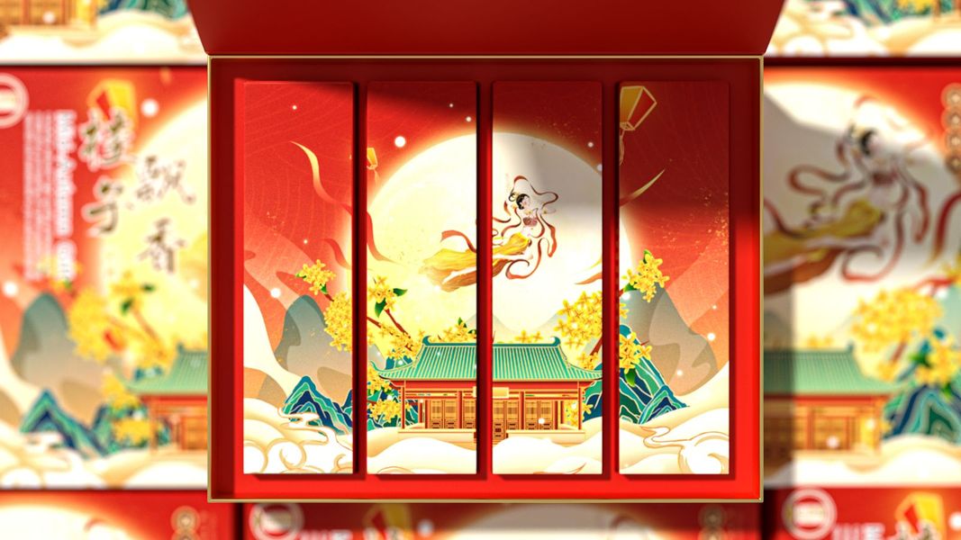月满中秋-中秋游园会-矢量国潮包装插画