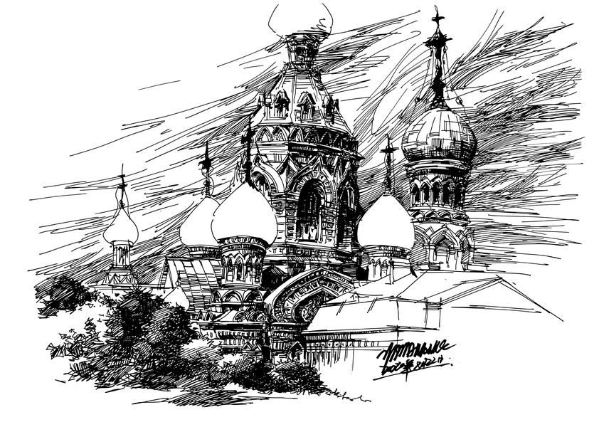 欧式建筑钢笔画表现(步骤分享)