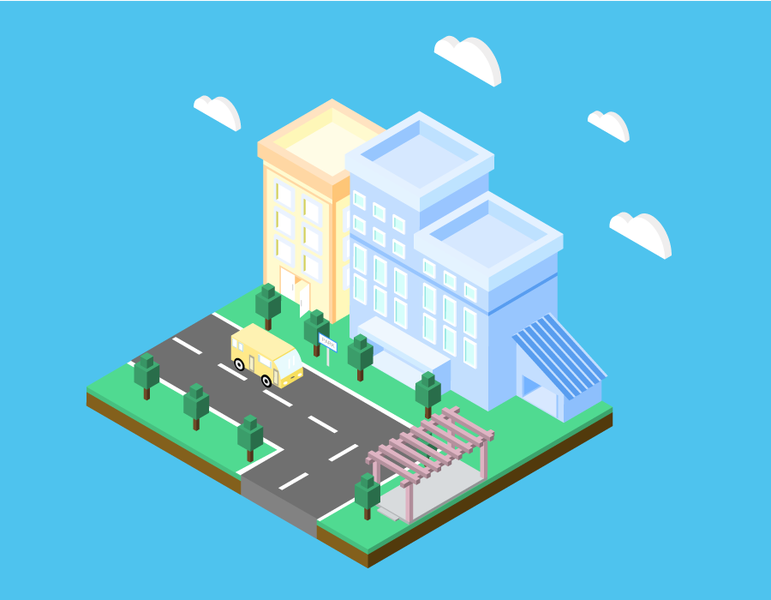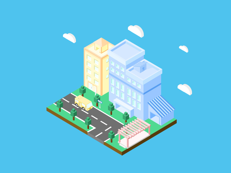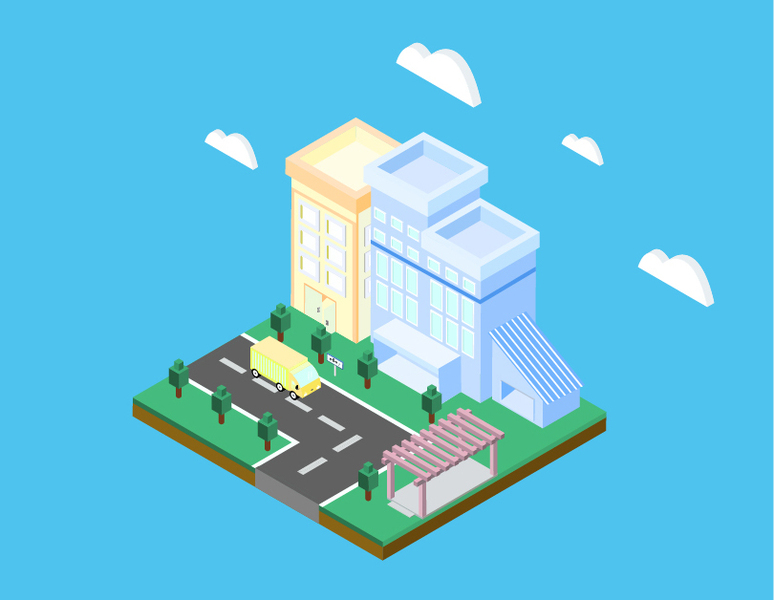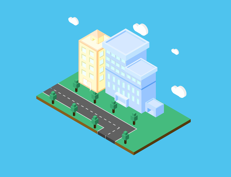 2.5D轴测图临摹-建筑街道