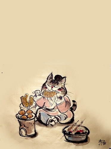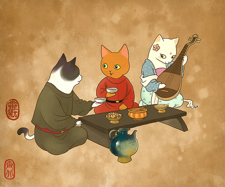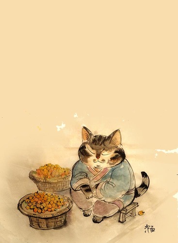 烹茶泼墨赋诗篇,读书听雨问自然。原创国风小懒猫。