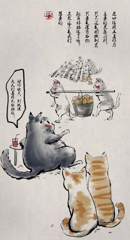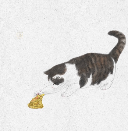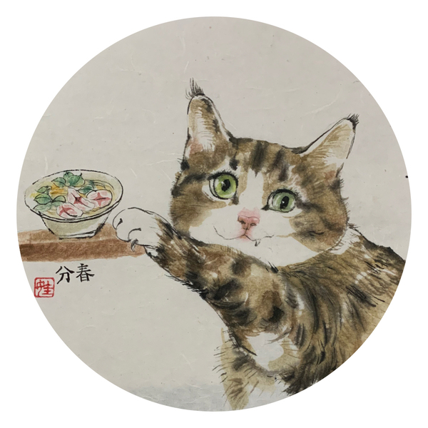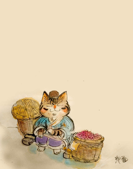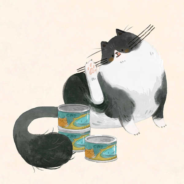 猫粮品牌故事水墨插画