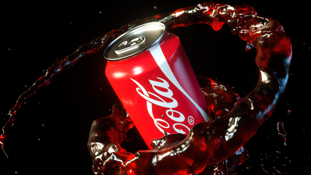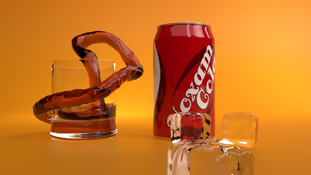 流体练习 围绕可乐 文字碰撞 C4D内置realflow+Octane