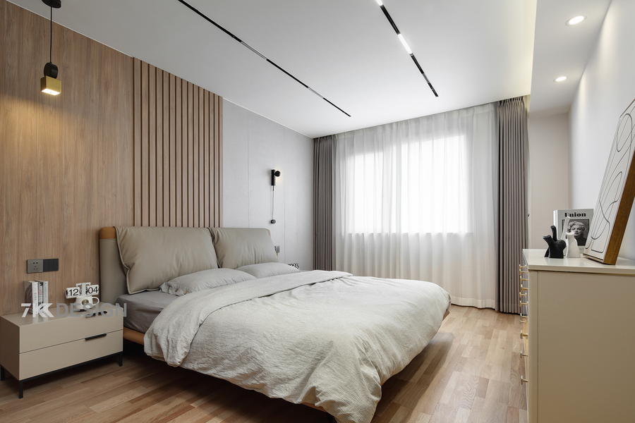 148平现代极简装修,木格栅+造型柜电视墙,超有设计感