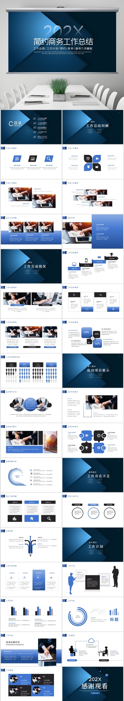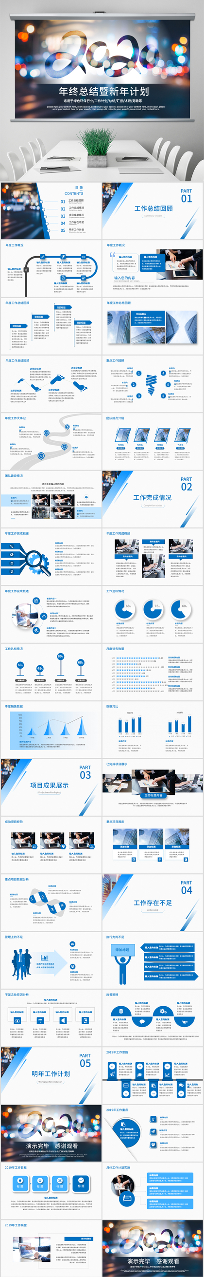 蓝色线条简约年终工作总结汇报计划ppt模板