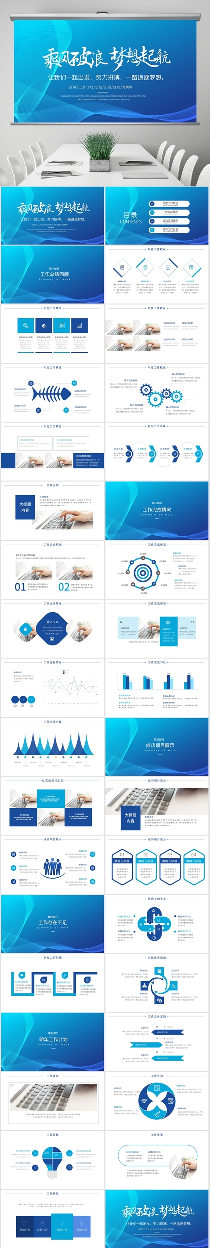 乘风破浪梦想起航蓝色工作总结汇报计划商务PPT模板