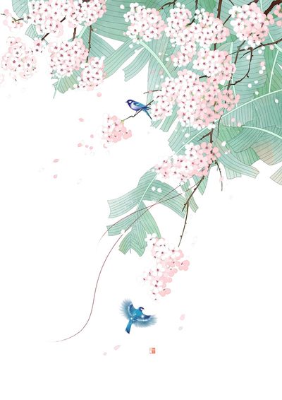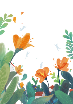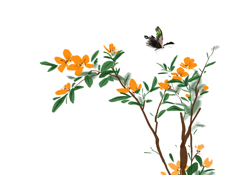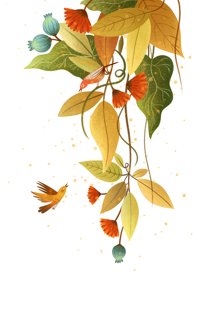 复古轻奢橙色花鸟蝴蝶北欧装饰画