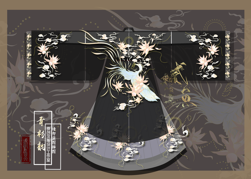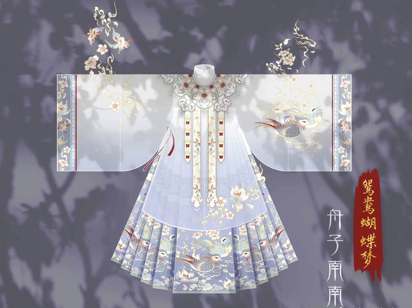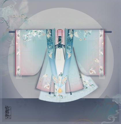 明制云肩斜领大袖长衫+百迭裙汉服设计