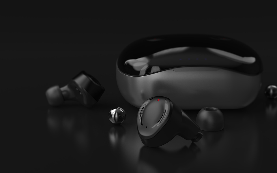 TWS无线蓝牙耳机“毒液”暗色渲染