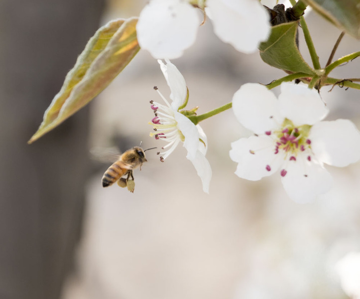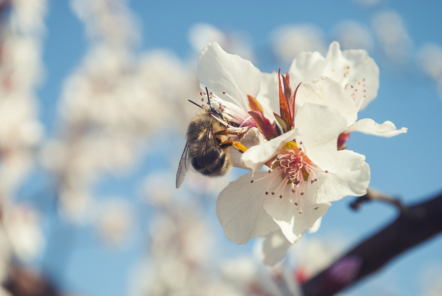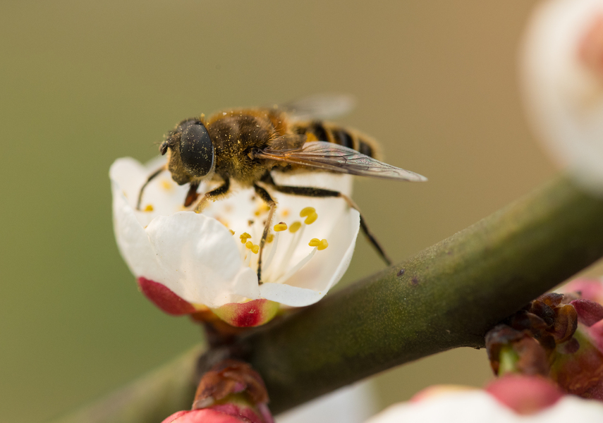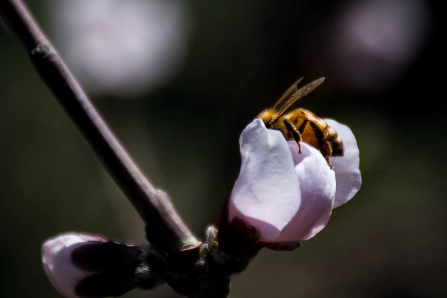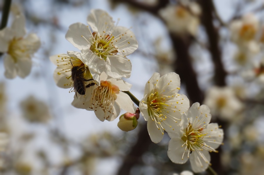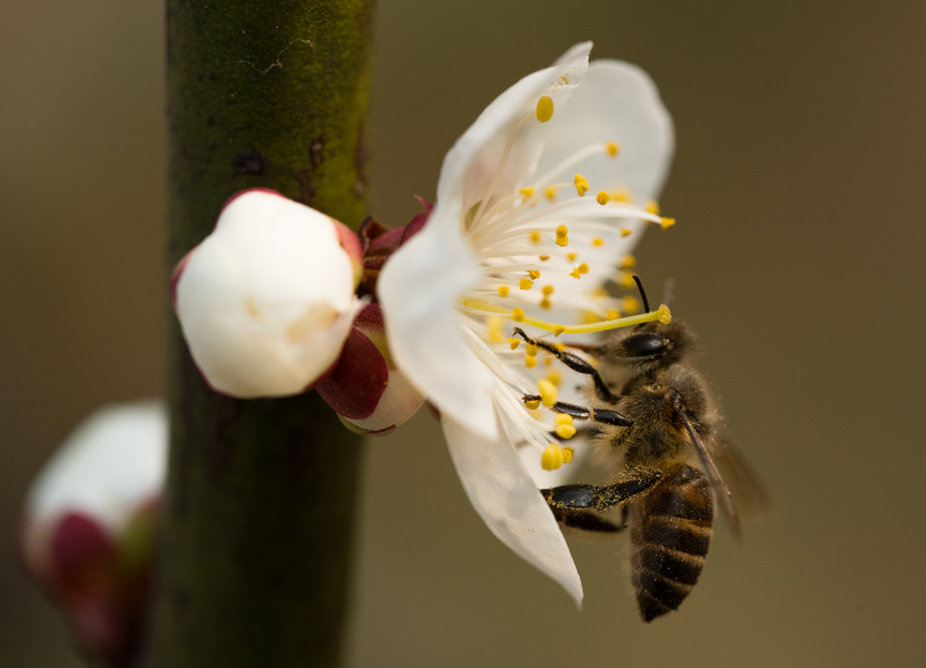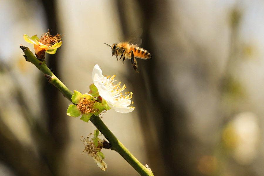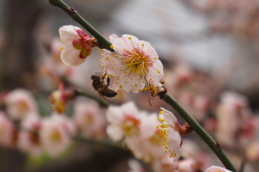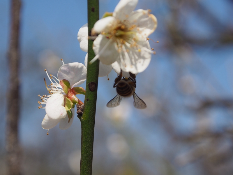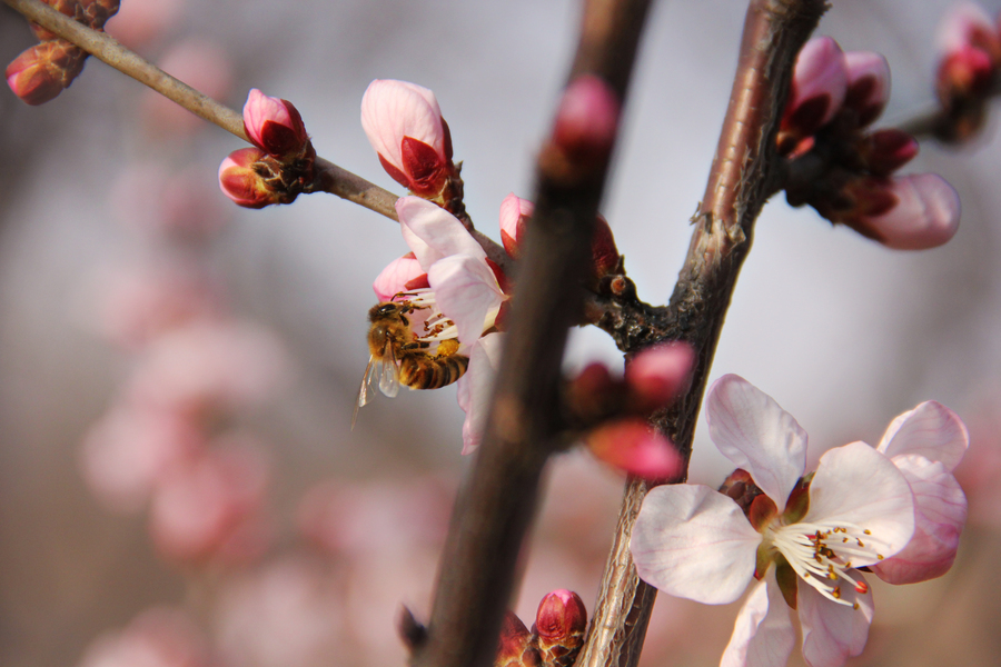 肥嘟嘟毛茸茸的蜜蜂与李花