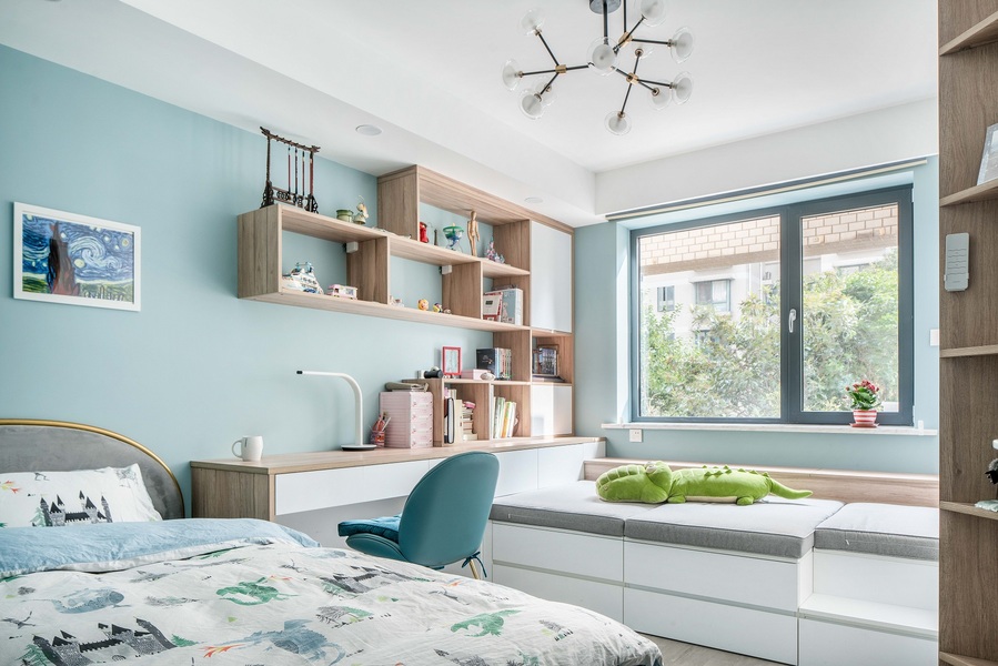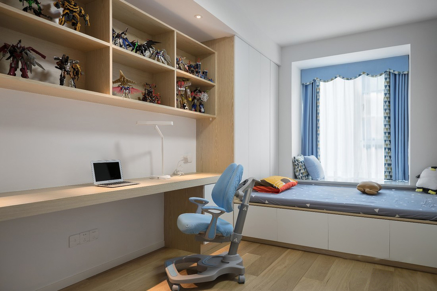89㎡简约美式风格三居室设计,色彩搭配得很舒服
