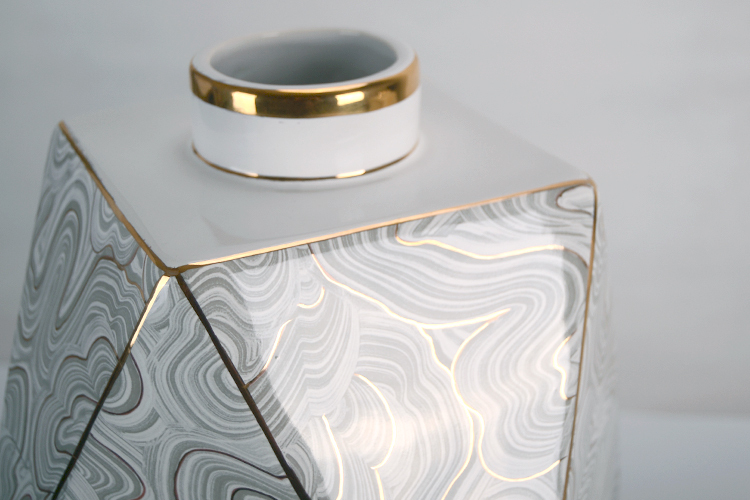 星派家居-几何钻石水大理石纹艺术陶瓷花瓶